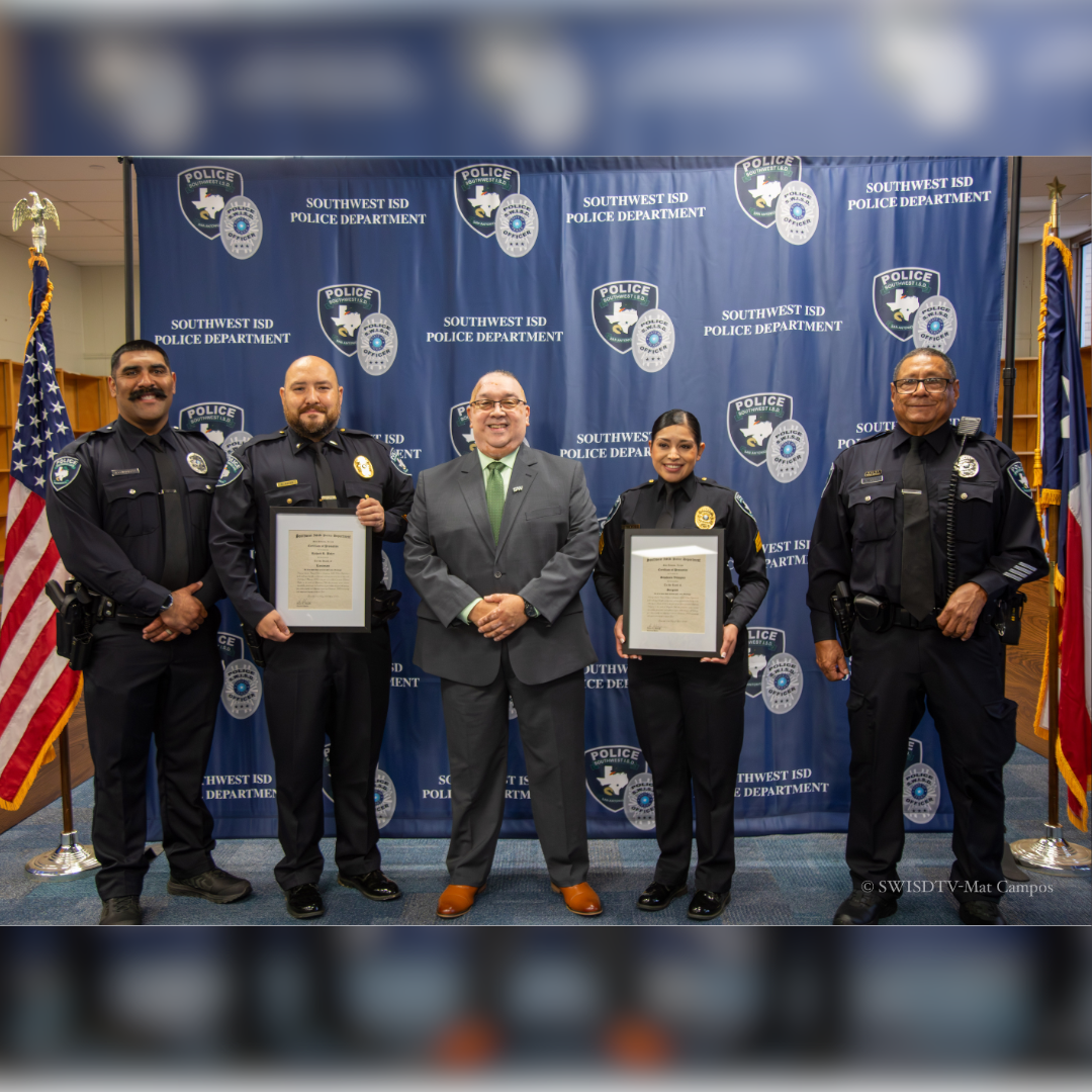 Congratulations to the SWISD Police Department on recognizing two well-earned promotions this week. Richard Baker was promoted to Lieutenant, and Stephania Velazquez to Sergeant during a special SWISD PD pinning ceremony. The department also welcomed two new officers to the team, Jesus Contreras and Abel Vasquez. We appreciate everyone who came out to show their support, and we’re proud to have each of you serving the SWISD community. #SWISDHeroes